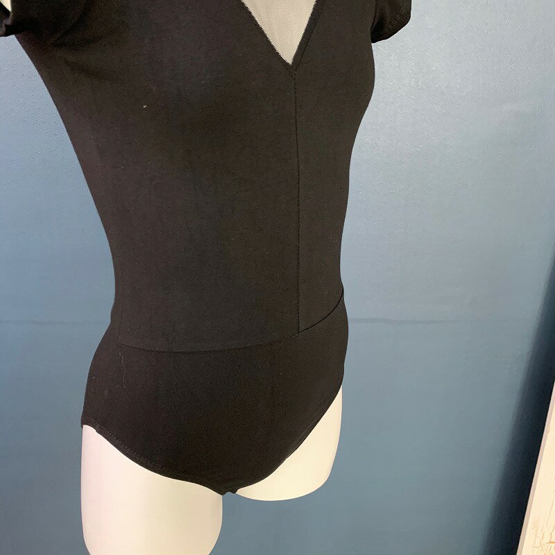 【即納商品】レオタード バレエ ダンス ウェア 競技ダンス 社交ダンス ジュニア 大人 バトン 新体操 器械体操 ストレッチ 黒 ブラック jazz ジャズダンス シースルー 半袖 袖あり フレンチ袖 送料無料 Shanze. シャンゼ